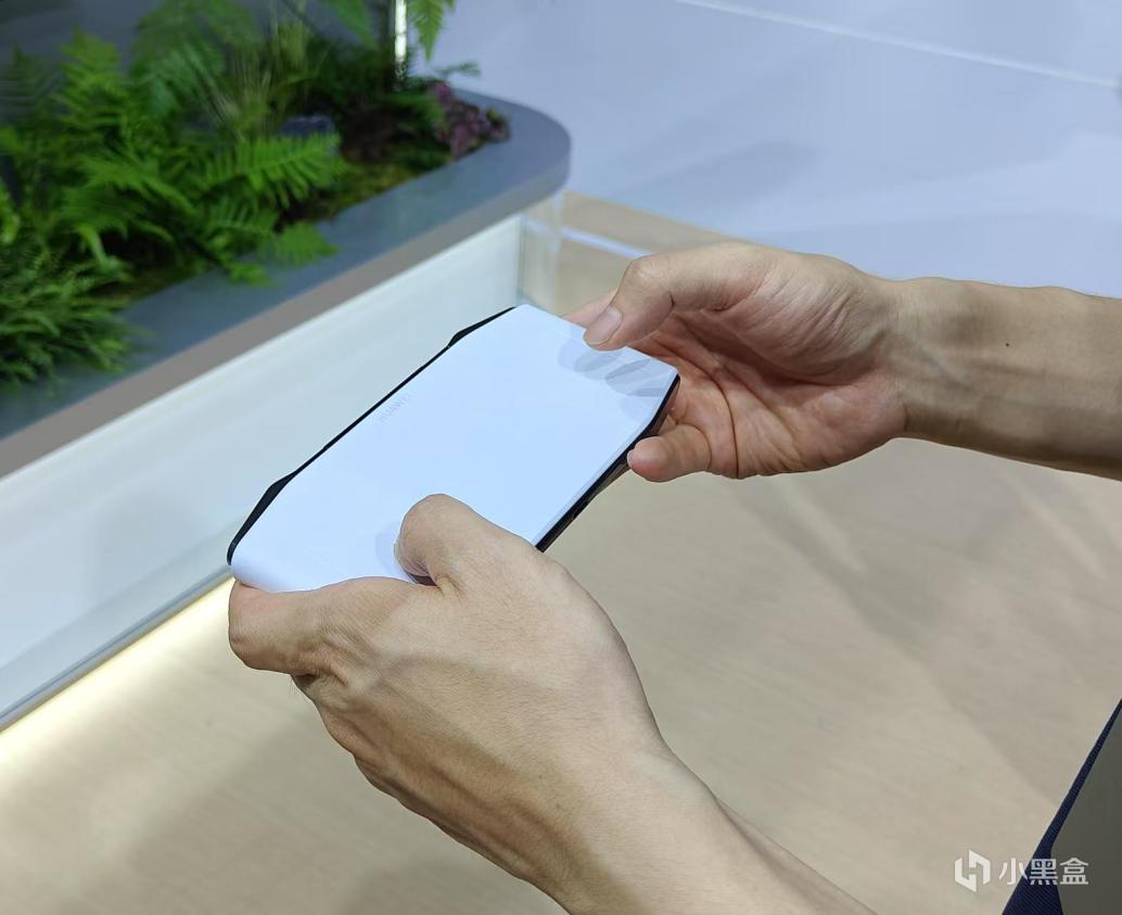 第三个是《QQ飞车》,这款游戏配备了一个悬浮触控手柄,看起来像一块小白板,可以模拟手机左右两边的按键,直接触摸或者双手在白板上悬浮都能控制飞车行驶,优点是很轻薄,不过实际操作起来需要一点时间适应,比如我就开得很烂……在使用的时候我经常习惯性的上下晃动,如果能加入一个体感功能可能会更好,也许还可以推广到飞行射击和体育类的游戏中去,开发潜力还是挺大的。