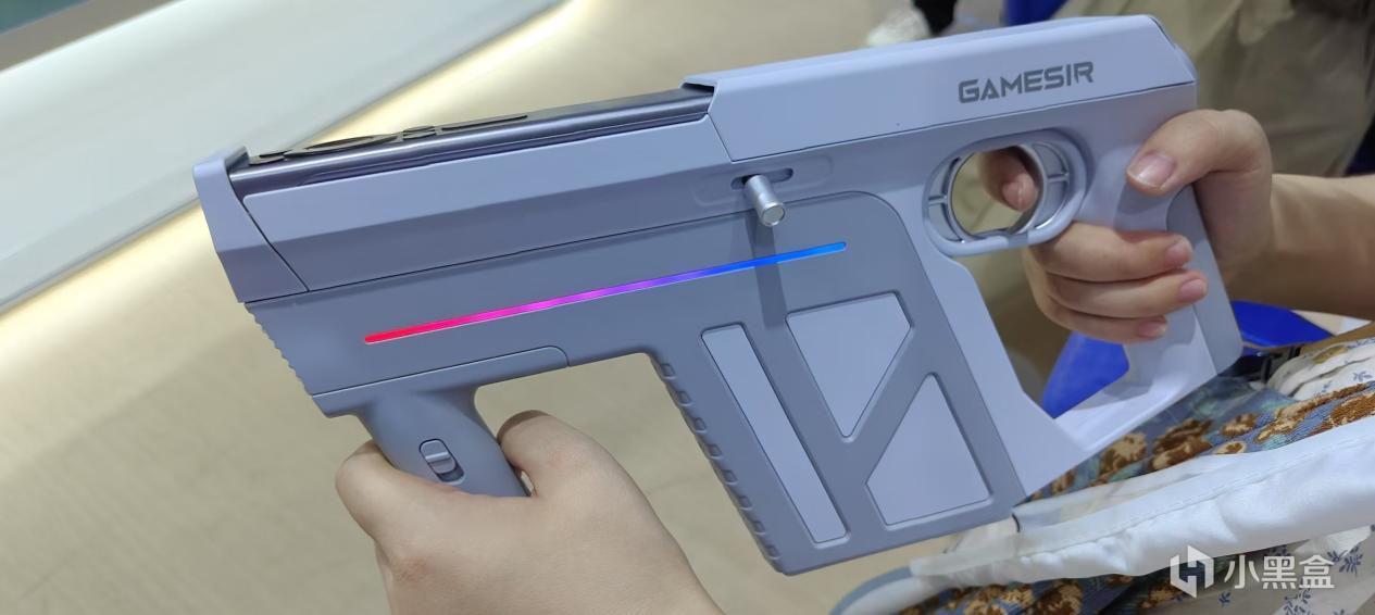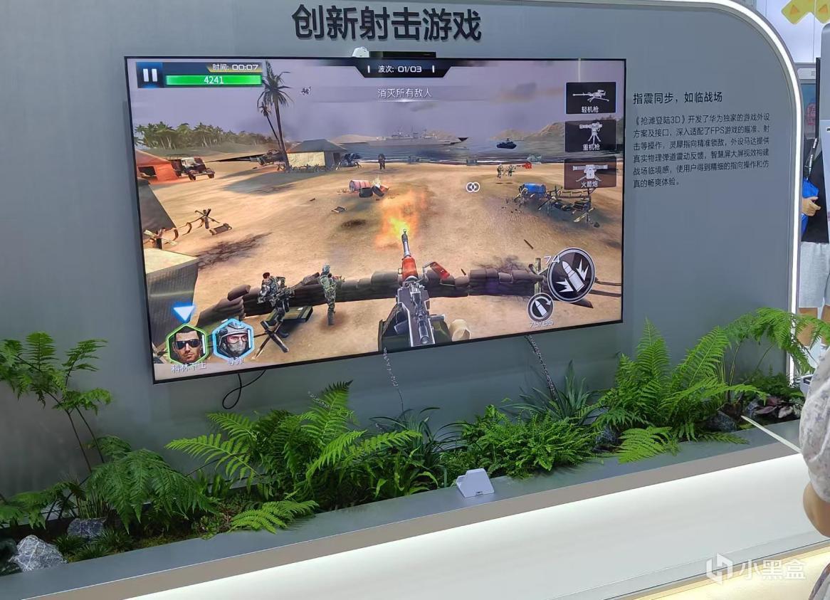 这几天我重点体验了展台中心区域的部分游戏。首先体验的是《抢滩登陆3D》,这是款比较经典的第一人称射击游戏,玩法就是守住阵地,将不断进攻的敌人全部消灭,在手机端通常是用左右的按键区域来控制瞄准和射击,这次展台配了一把光枪外设,类似于街机游戏的那种光线枪,玩的时候只需要瞄准射击就行了,在开枪之后还有较强的震动反馈,大屏幕突突突的感觉十分爽快,不过如果要普及到其他FPS和TPS游戏可能要考虑一下人物移动的问题,也许以后可以再配一个脚踏板的外设?