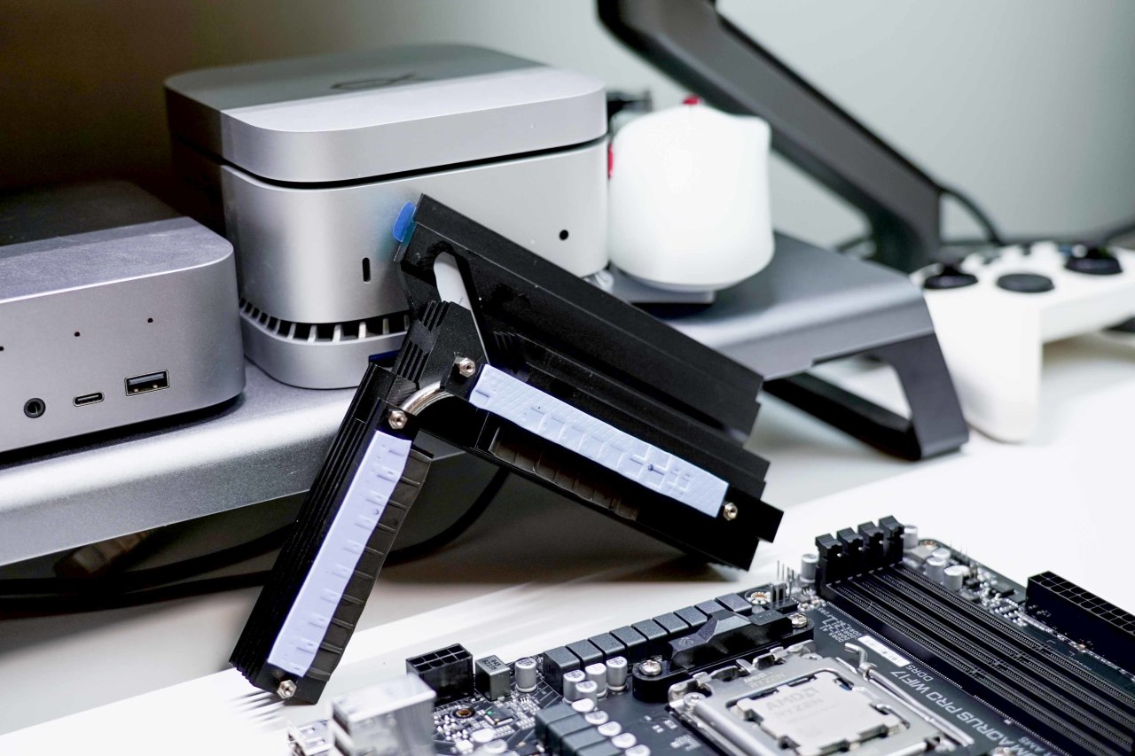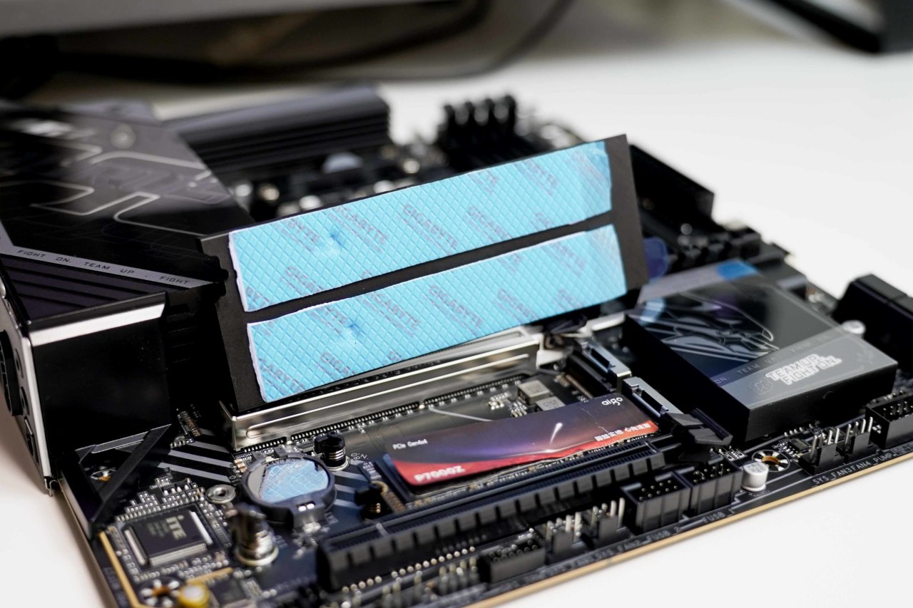 同样使用易快拆设计的是M.2固态硬盘马甲,两条固态硬盘共用一个马甲,相比一对一的单独马甲设计,单硬盘会有更好的散热效果。