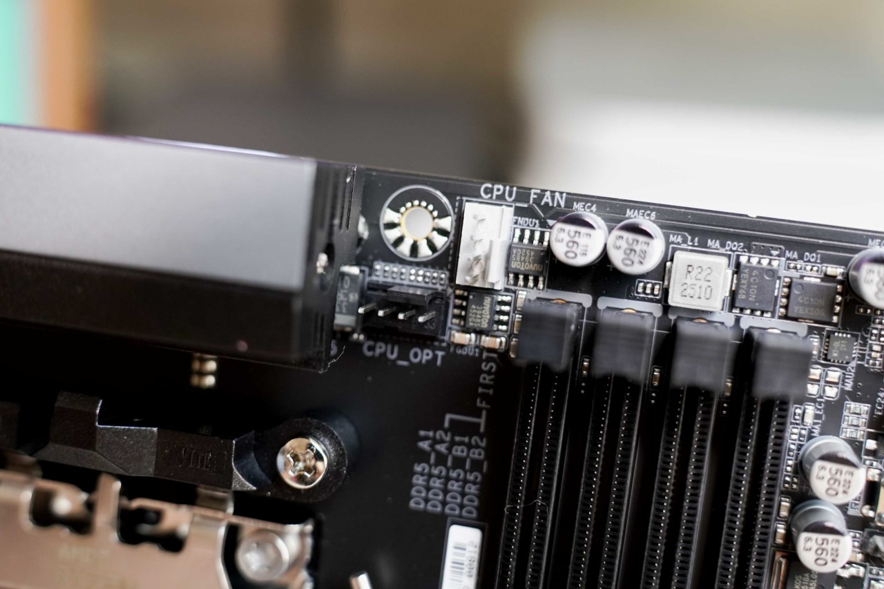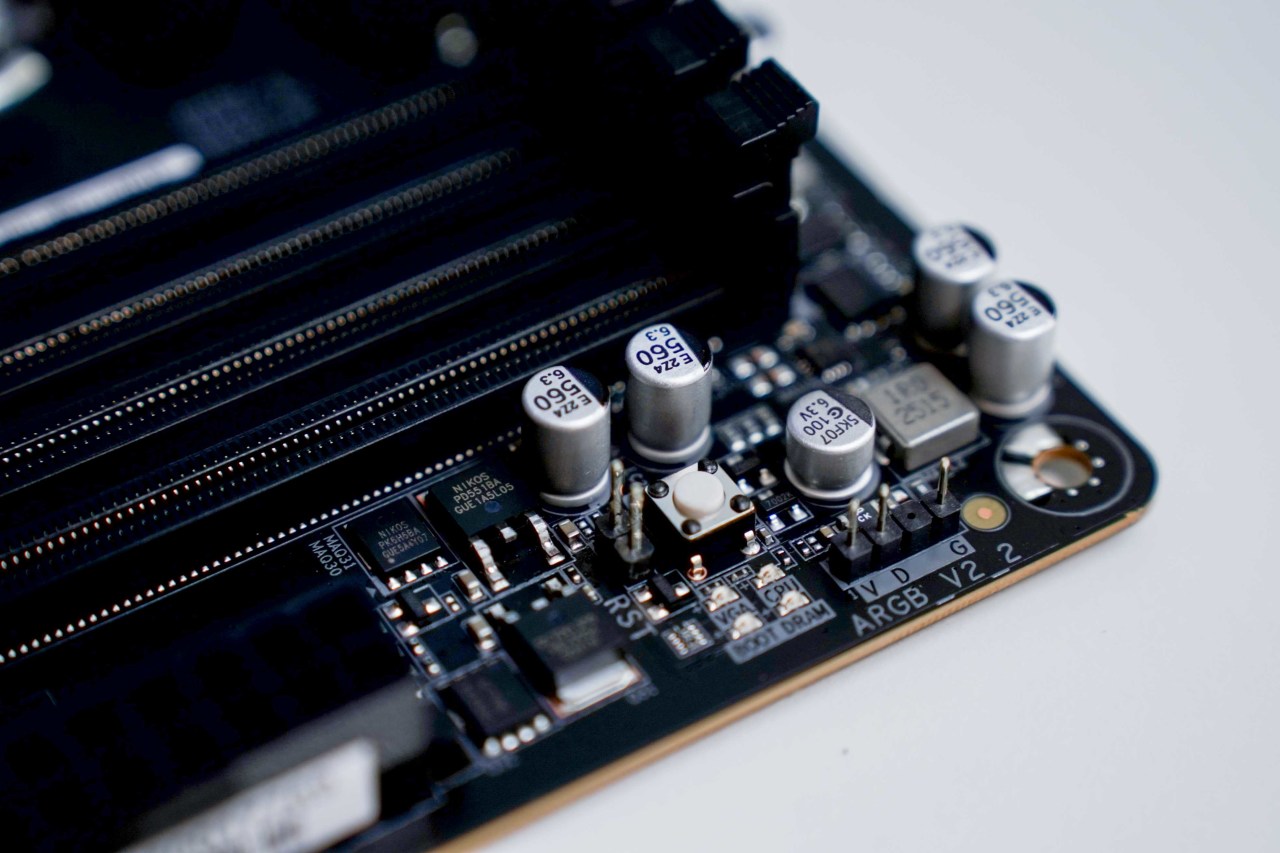由于给散热器留了非常大的空间,风扇接口布局只能紧凑点了,FAN在中间区域,RGB控制接口则在主板右上和底部,建议打算风扇装满的用户额外加个Hub管理。