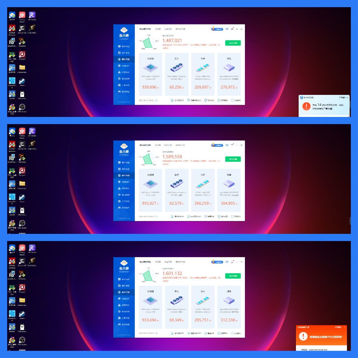 ● 综合得分为1487021 / 1589558 / 1601132