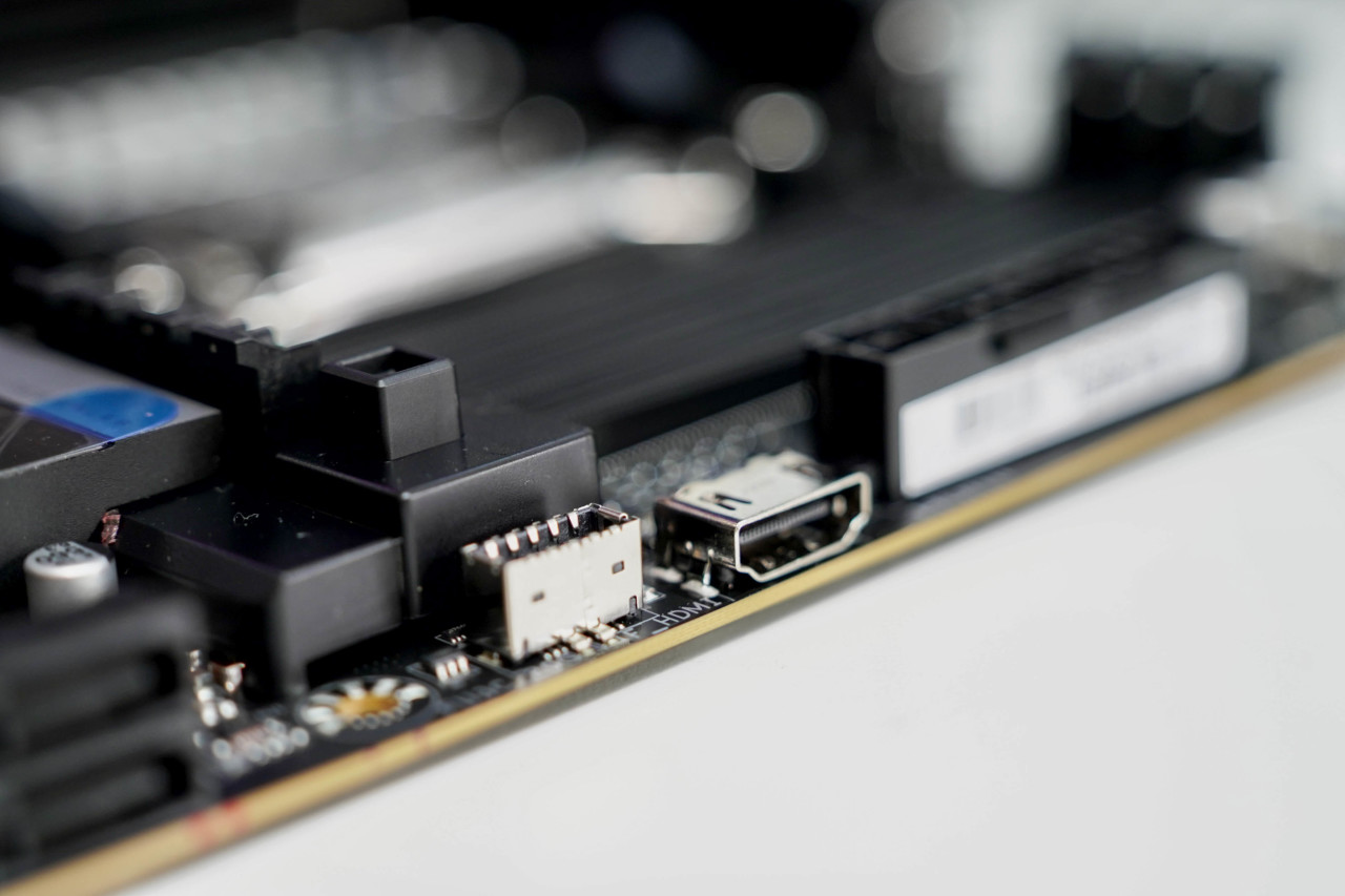 非IO区的接口就比较常规了,内置了额外HDMI接口,方便接机箱/水冷副屏,边上的USB拓展口则是USB3.2Gen2x2协议,乔思伯z20这类机箱完美适配。
