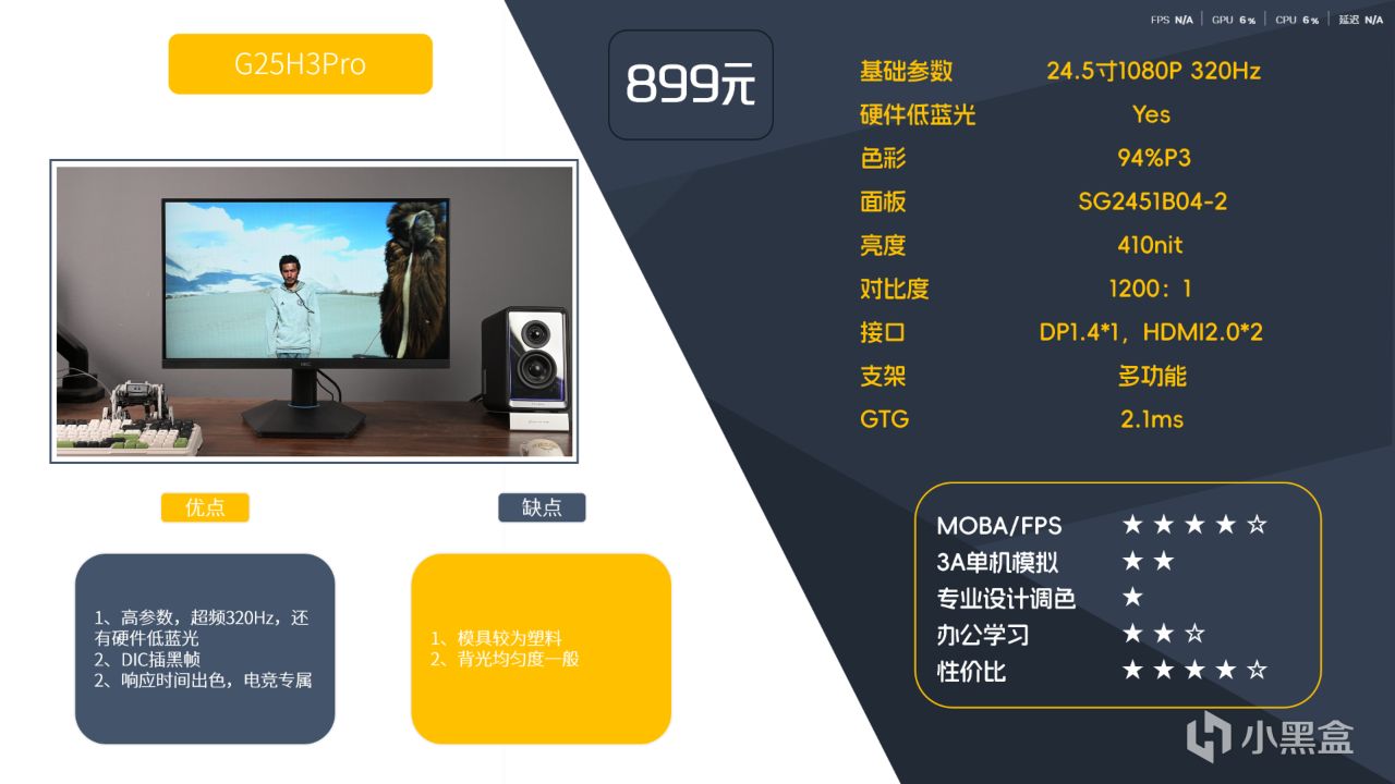 對於電競選手更進一步的機器,就是HKC今年的G25H3Pro了,它的前身G25H3就是我非常喜歡的300Hz的入門專業電競顯示器。但是呢,好多噴子就拿着沒有硬件低藍光這個說事。哎呀不護眼啦,對眼睛有害啦,要瞎啦!於是HKC掏出了這臺加入硬件低藍光的G25H3PRO