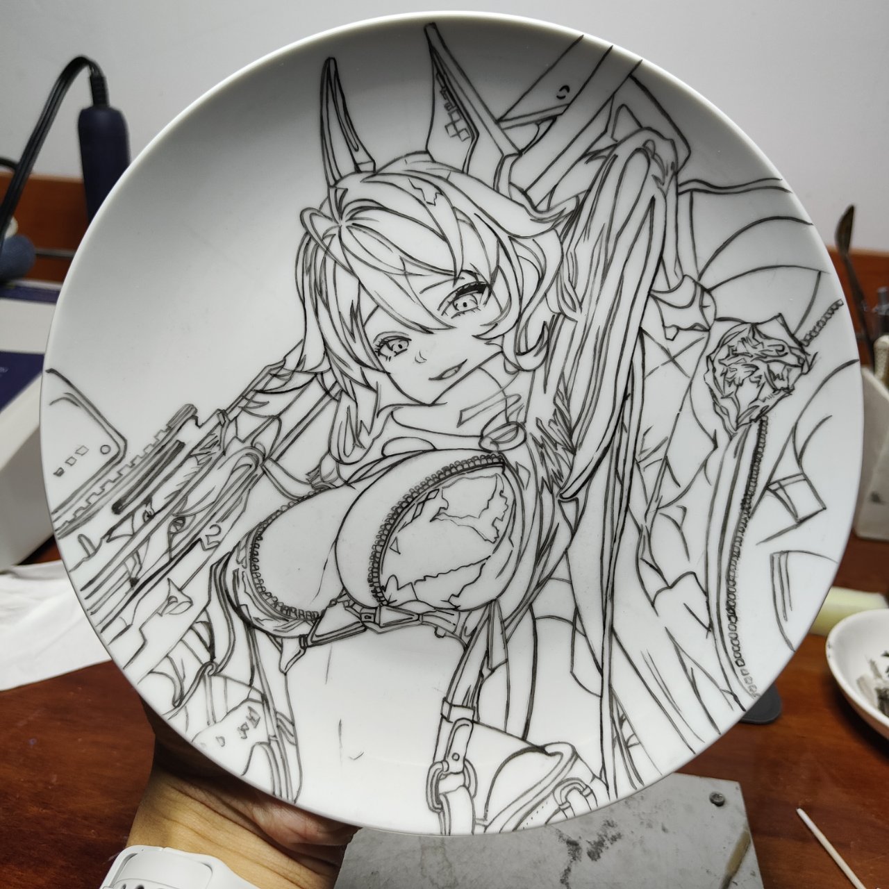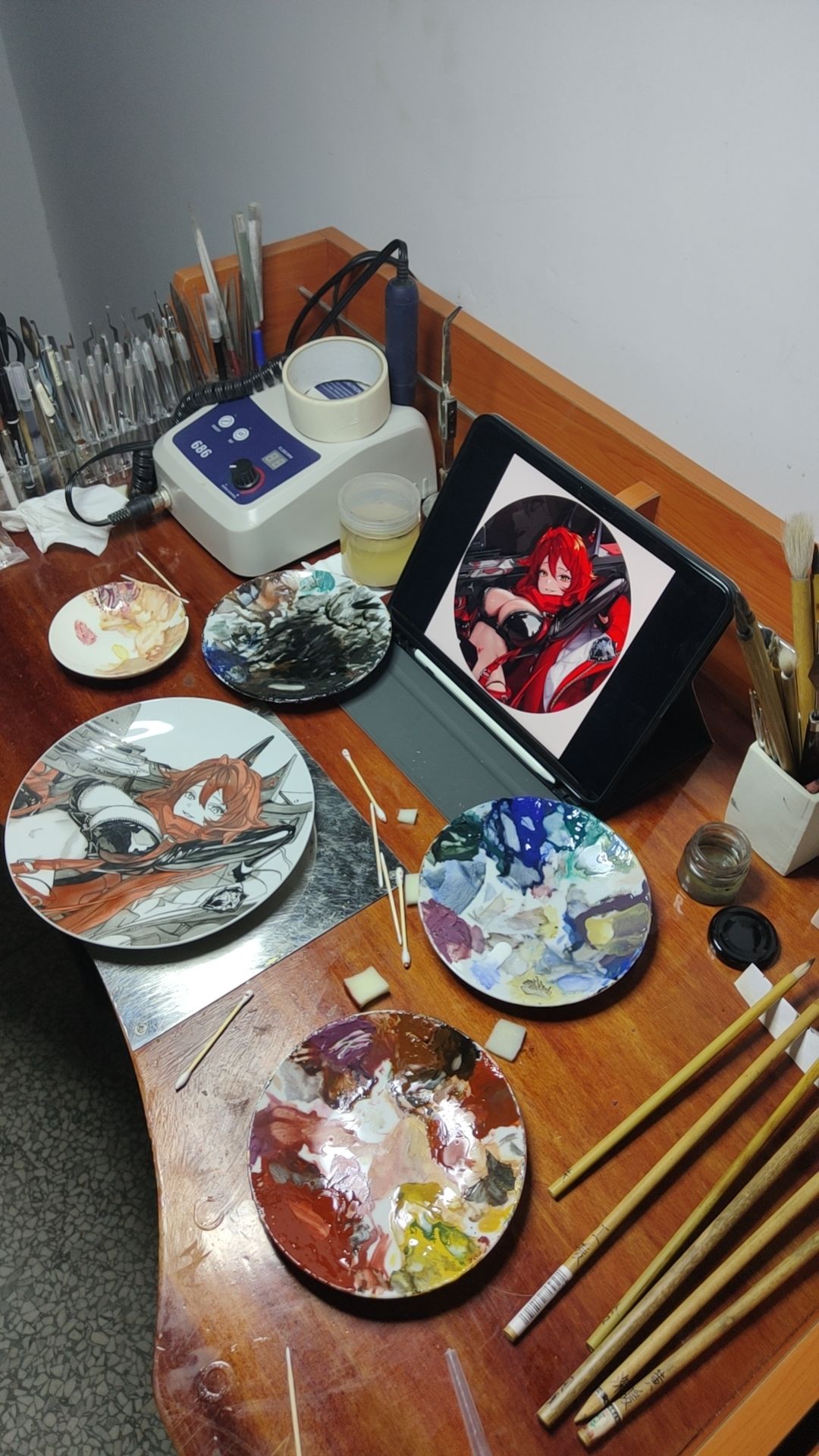 上帖后续来了,鏖战三个小时完成上色步骤,效果看着还行就是红色没那么艳,明天送去烧制(红色比较难烧制,希望别翻车,不然就辜负盒友的期待了)