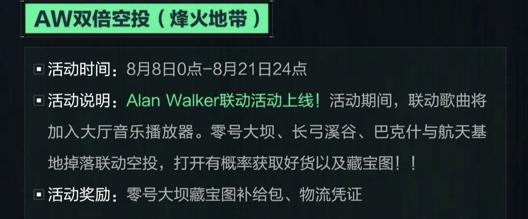 除监狱外所有地图都会掉落联动空投,约等于野生大保险了