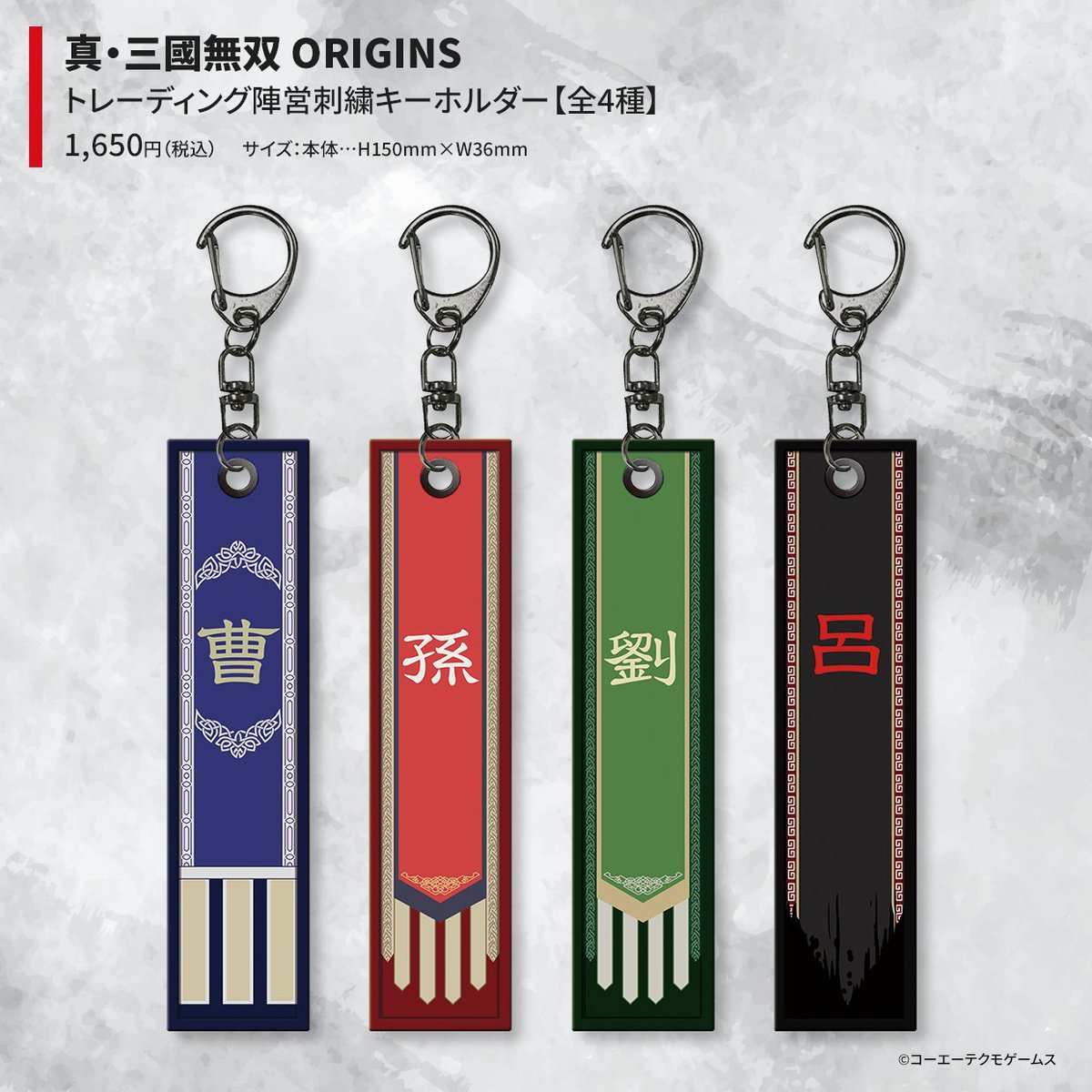 周边:《真·三国无双 起源》主角的耳夹、月香草的熏香、太平之要款式的围巾、阵营刺绣钥匙扣,20周年纪念的阵营围巾、亚克力立牌、徽章等。