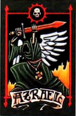 在抓捕堕天使这一点上,他不仅指挥着自己的战团,更统领着所有"不可饶恕者"子团。所有暗黑天使子团在许多事务上都会遵循阿兹瑞尔的指令,这不仅仅是对初创战团的敬意,更暗中超越了《阿斯塔特圣典》最重要原则之一。即禁止重组古老的星际战士军团。