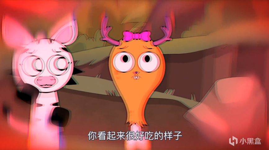 如果仅仅是这样,还不至于让无数家长感到恐慌。但当你继续深入发掘下去,便会发现:无论是“节奏盒子”动画还是“节奏盒子”游戏,都有各种各样的血腥暴力要素,动不动就全屏变黑、变红,冲击力这一块当场拉满。