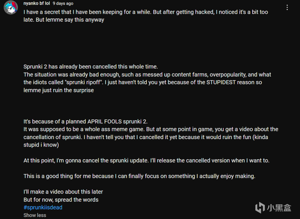 到了最后,迫于外界的种种压力,NyankoBfLol选择将自己制作的Sprunki模组删除,并终止重制版的开发计划,很难不令人唏嘘。