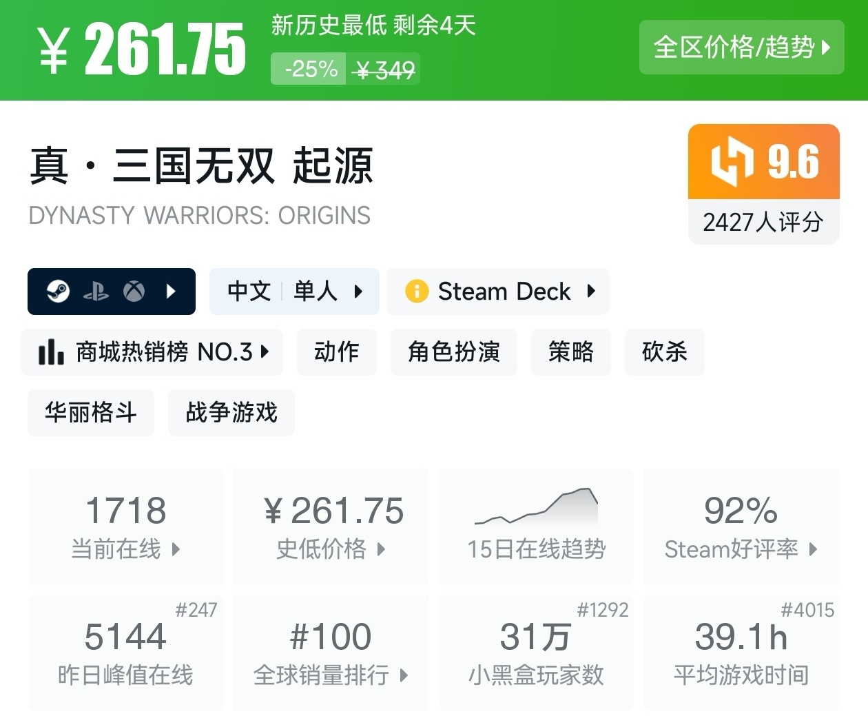 大家好,没错,又是我,你们的老朋友亦然,在最近有很多游戏都迎来了不同程度的折扣,其中就有很多大作,当然,还有很多新史低游戏,而且有的新史低仅剩一天,所以抓紧时间,因为有些游戏下次打折就不知道什么时候,我将为各位进行一个汇总,希望我的汇总,能够帮助各位盒友挑选心仪的游戏。