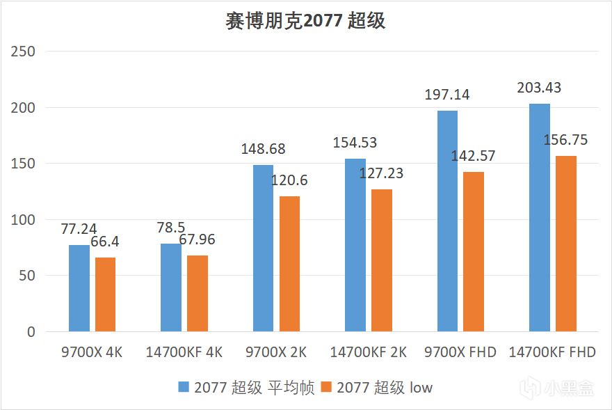 赛博朋克2077,这也是测试的7款游戏中,唯一占据了领先位置的一款,按照过往的经验,2077对内存频率的反馈比较敏感,可能是147KF搭配的7200C36的内存产生了正向的作用。