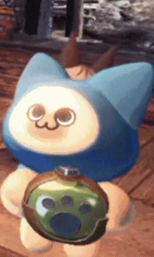 艾露猫经常会在狩猎时中整出些岔子,奔跑的时候会平地摔,放壶爆弹的时候被炸得灰头土脸,如果CD对的不是很好,甚至会对你重拳出击。