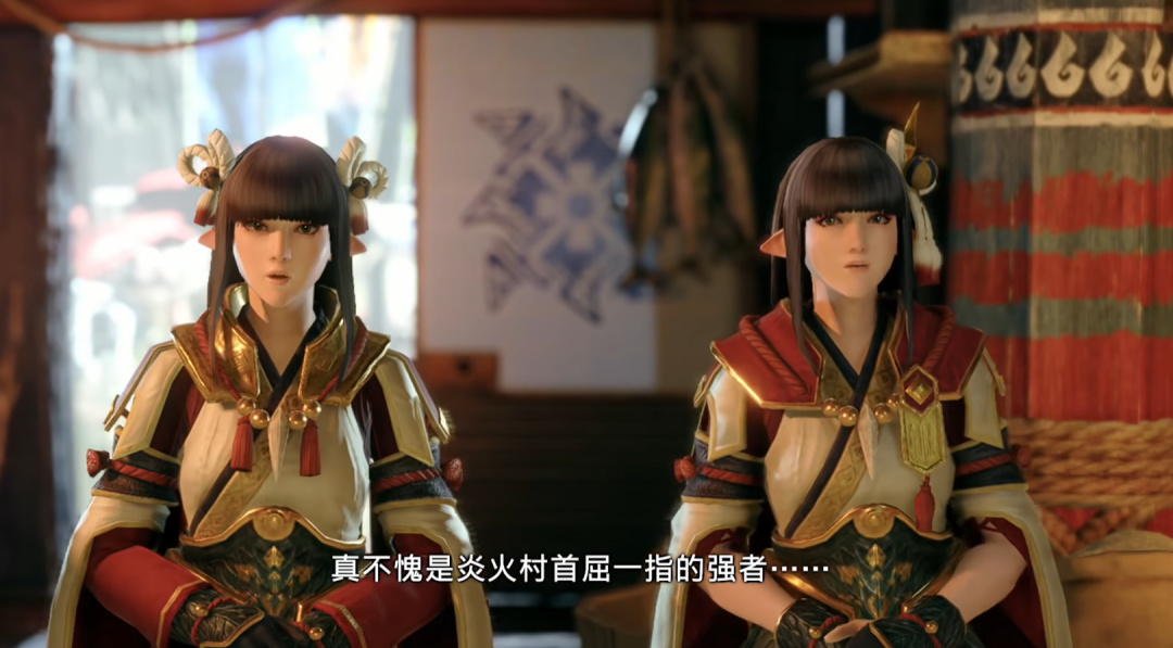 「崛起」的设定是在一个和风村落——炎火村。两姐妹与猎人是从小玩到大的玩伴,姐姐火芽会坐在村落门口,管理村任务;妹妹水芸则是在集会所里,负责集会所各项日常。