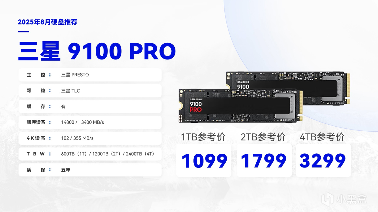 对于预算比较充裕的,想买原厂盘又不想用国产的,那你就看看三星 9100 PRO以及西部数据 SN8100,这两块原厂盘价格方面都几乎差不多。