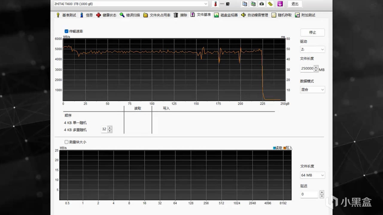 我也曾测试过致态在消费级产品上第一块采用QLC颗粒的Ti600,在进行全盘写入测试中,你能很清楚的了解它的性能。