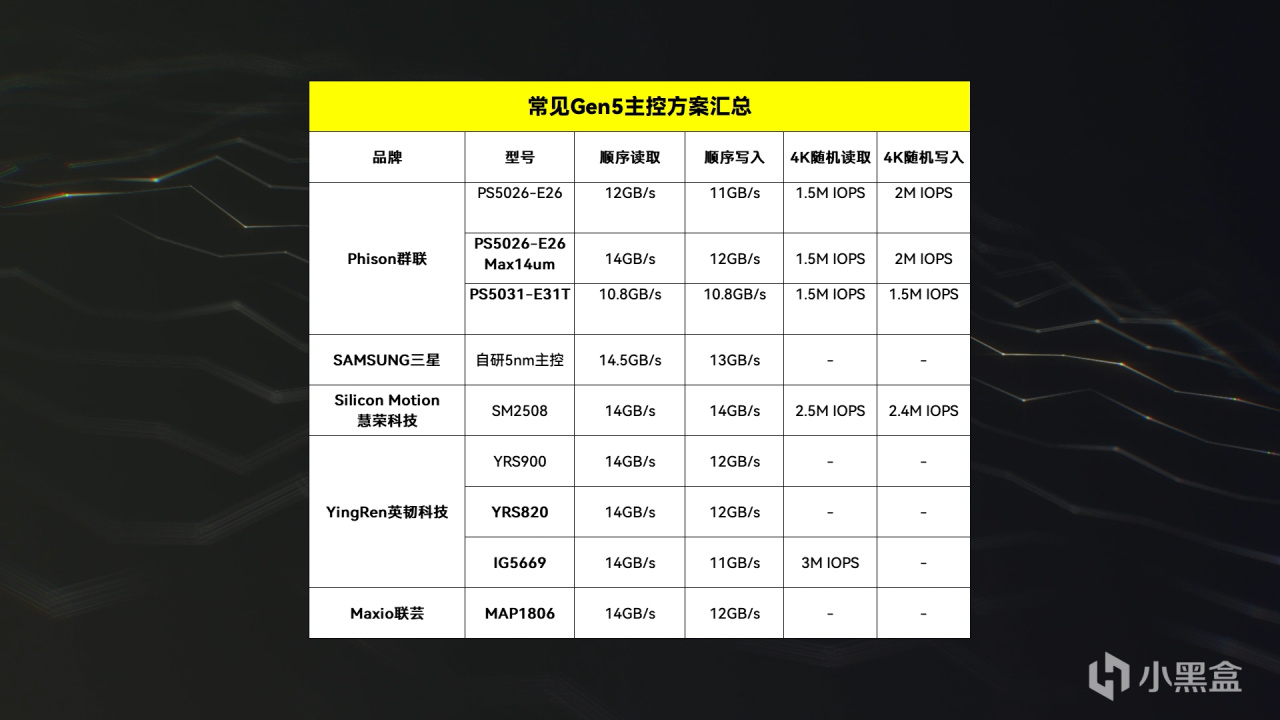从主控芯片的理论性能数据上来看,大家基本上都是能提供了高达14GB/s的读取速度,但也有小部分比如群联的E31以及E26则是非满血的性能。