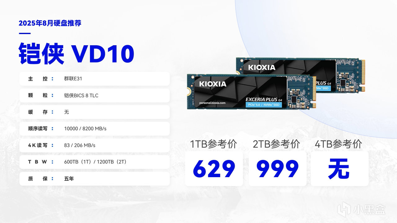 在两款硬盘中,首推的是铠侠 VD10,采用的群联E31,原厂BiCS 8 TLC颗粒,在品质方面会更加的有保障,并且其价格会相较于希捷 酷玩540更便宜许多,建议尝鲜购买1TB即可,如果想购入其他容量,建议看看后面将推荐的几款硬盘。
