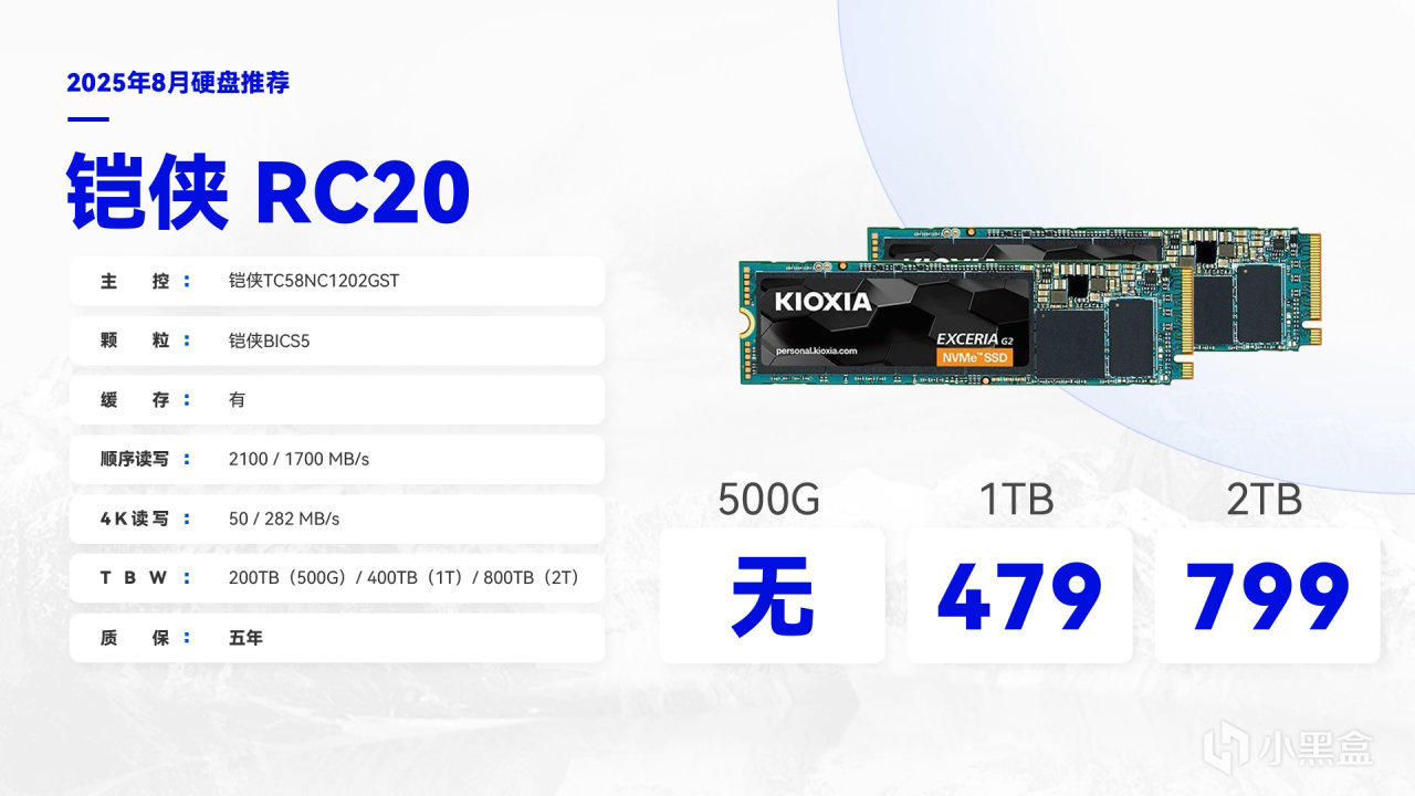 如果非要推荐的话,可以看看铠侠的RC20,在固态硬盘没涨价之前一直是装机佬的心头爱,价格低的同时性能也还行,只不过发热高,只推荐PC加装,笔记本不太适合。