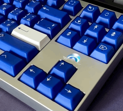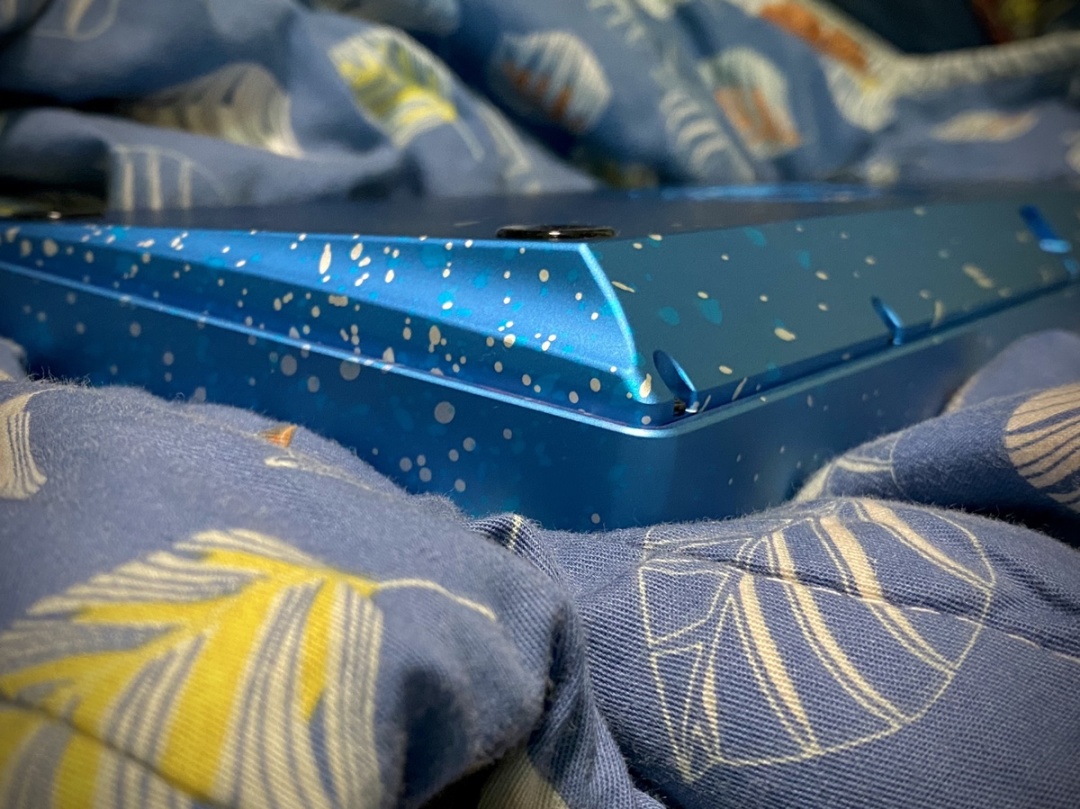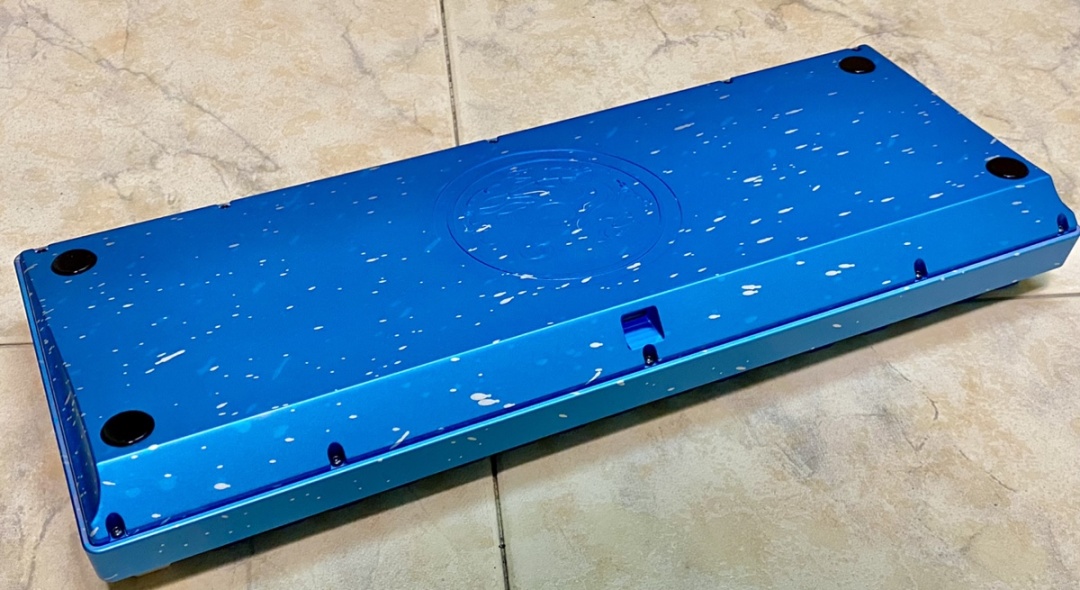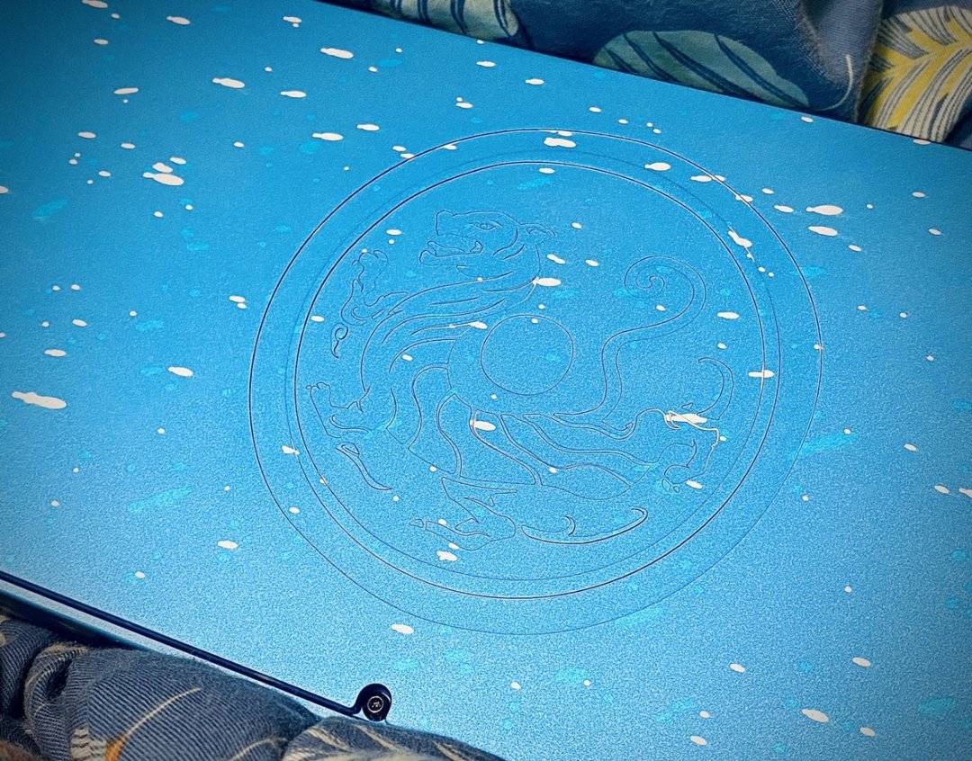 潑墨藍色很特別,這個藍色看得很亮,像是電鍍一樣,總之就是很特別?想不到詞形容,在鍵盤側面有一個弧線,無線銜接着整個地殼的每一面,正下方有一個很大的logo,正面沒有東西,沒啥好說的