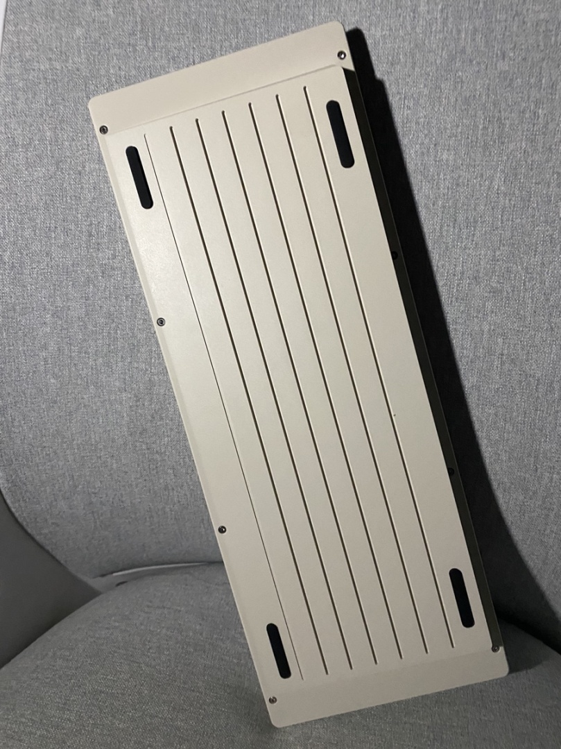 復古大邊框的設計,鍵盤背面有很多個槽,模仿的經典掌機Gameboy的設計,可以說是致敬經典了,而且做工十分好,陽極水平也很高,摸起來十分絲滑,使得在這個價格這個鍵盤屬於獨一份,十分值得購買,缺點就是聲音不太好聽