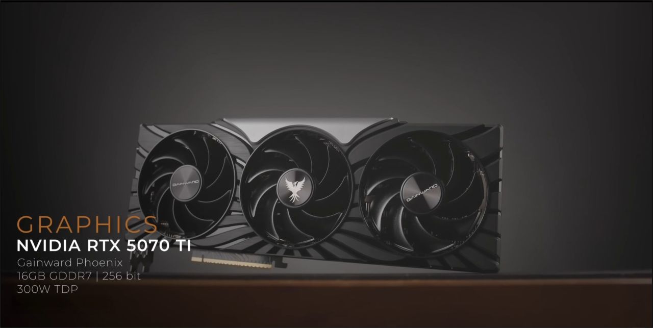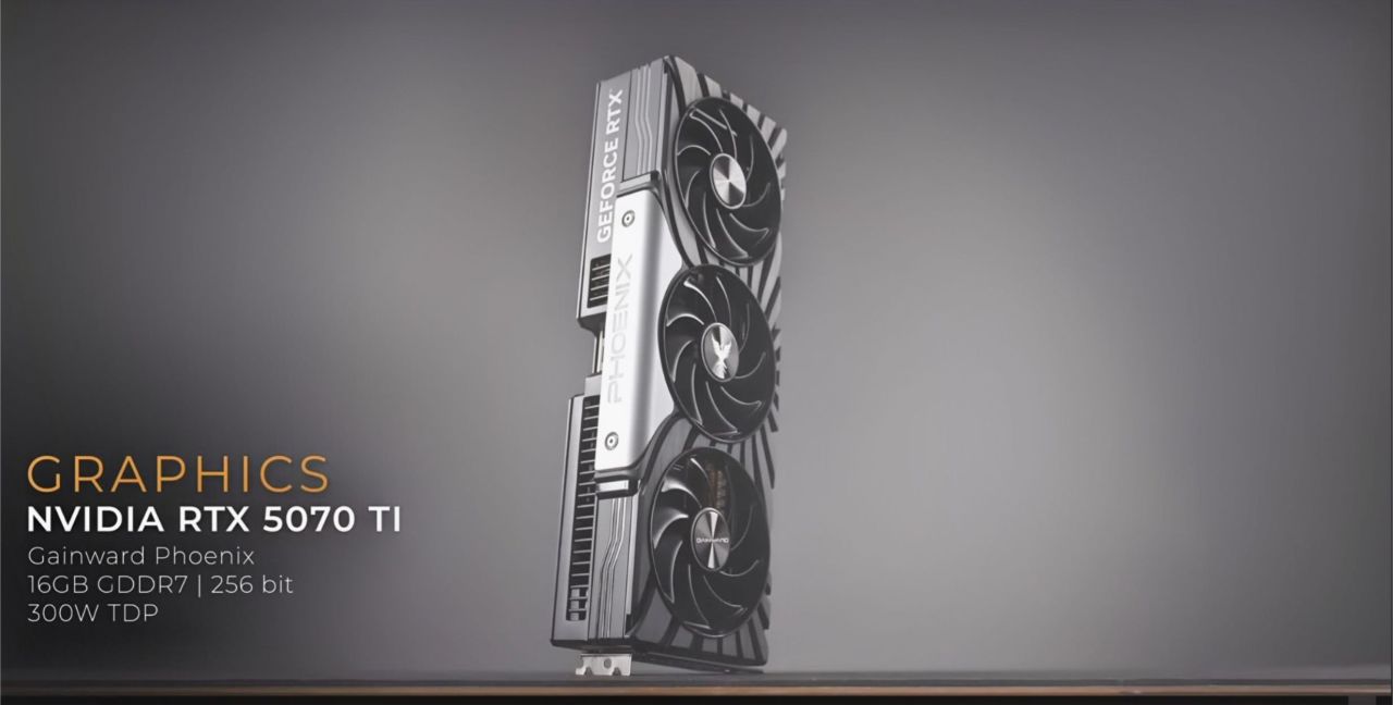 显卡则是耕升的5070Ti凤凰,作为耕升的次旗舰系列,并没有引进国内,但是在国外受欢迎程度还是挺不错的;这张5070Ti的外观设计上贴近凤凰的形象,风扇面设计成类似双翼的设计,整体的金属质感也比较突出