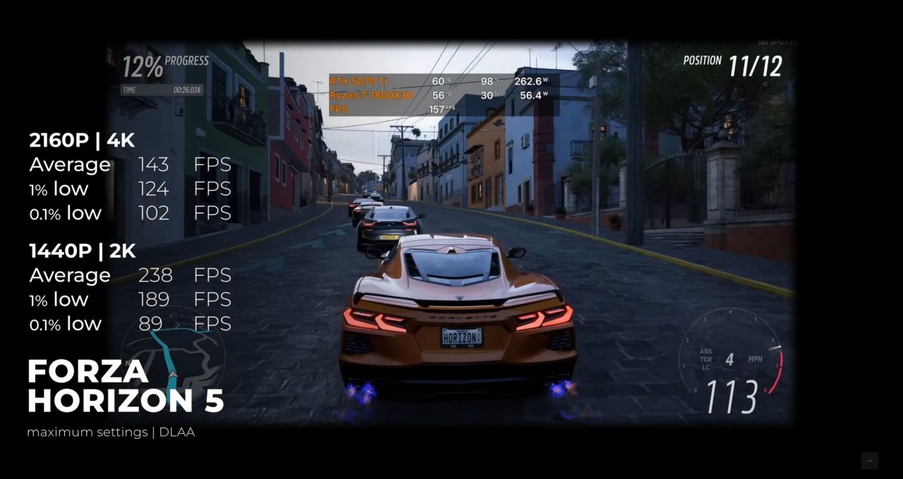 在优化之王地平线5的表现中,4K分辨率下平均帧数为143FPS,显卡温度稳定在60度左右,CPU温度稳定在56度左右