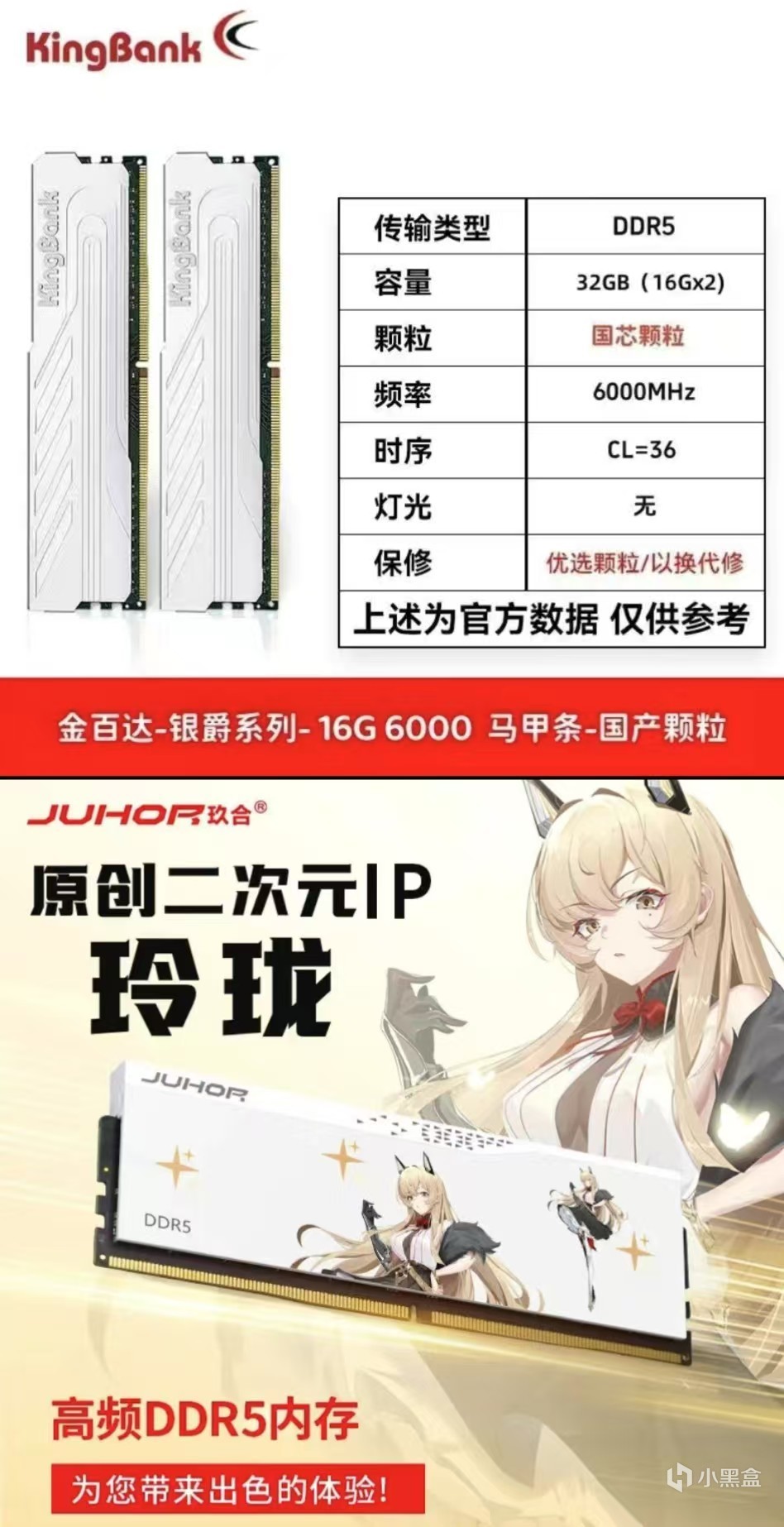 内存条:金百达银爵 ddr5 6000 长鑫颗粒 C36