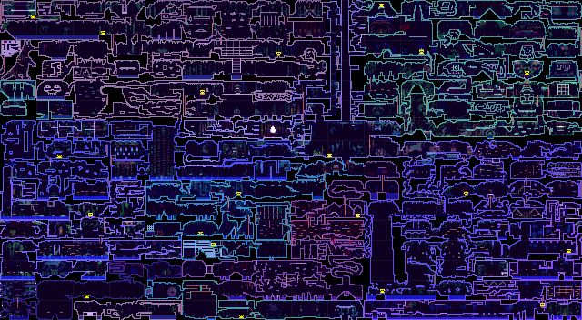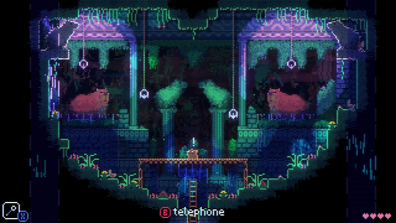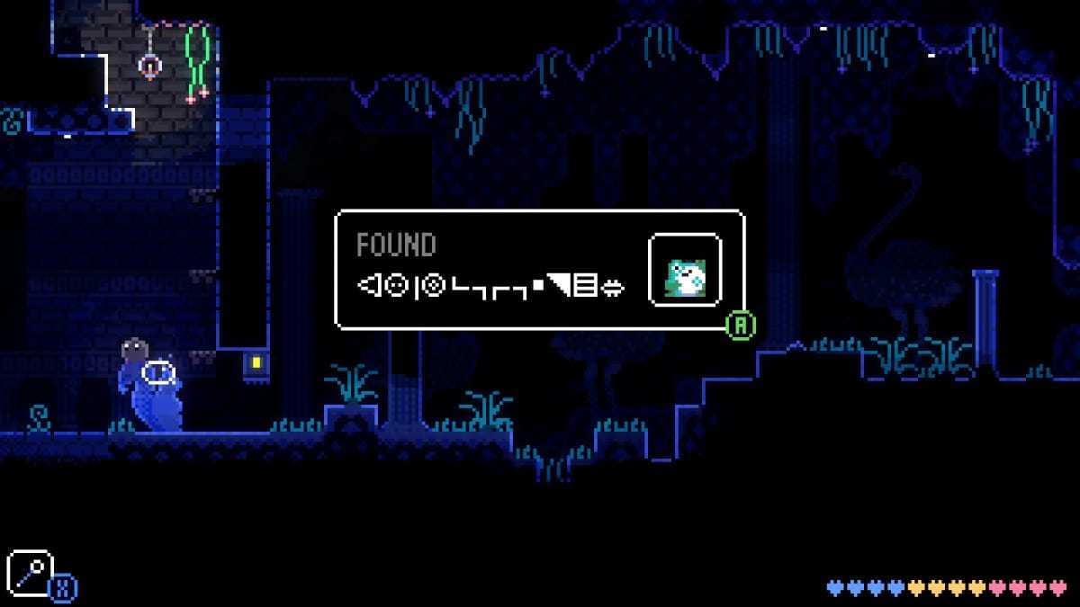 地图当然是类银这个品类的重中之重,不评价其他同样获得出色评价的类银恶魔城游戏,但是动物井完全是另一层面的东西——就好像它的解决方案从来不在教科书上。当然,这里我想夸耀的不是它通过几乎不可见的平台和区域入口来隐藏可收集品的设计。《动物井》有着顶级的隐形引导,可以悄无声息地教导玩家如何运用气泡,不同墙壁之间的交互区别,并让玩家在运用这些“自己推敲得来的知识”的时候,获得无与伦比的成就感。