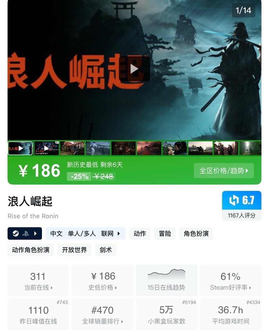 《浪人崛起》是由Team NINJA開發的開放世界動作RPG遊戲,以19世紀日本幕末時期爲背景,玩家將扮演浪人,在戰亂動盪中憑藉獨特戰法開創新時代,體驗戰鬥與生活並存的幕末生涯。