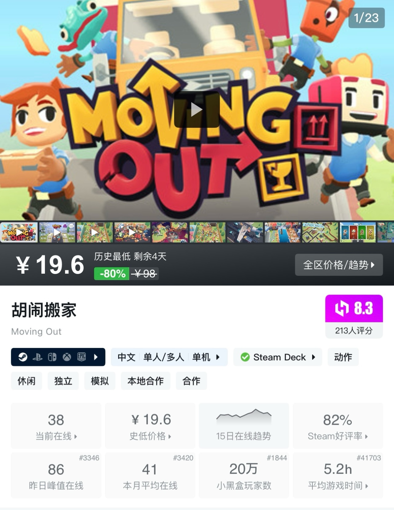 《胡鬧搬家》是一款主打多人合作的搞笑物理模擬搬家遊戲,玩家需與夥伴協調配合,在混亂中完成各種奇葩場景的搬家任務。