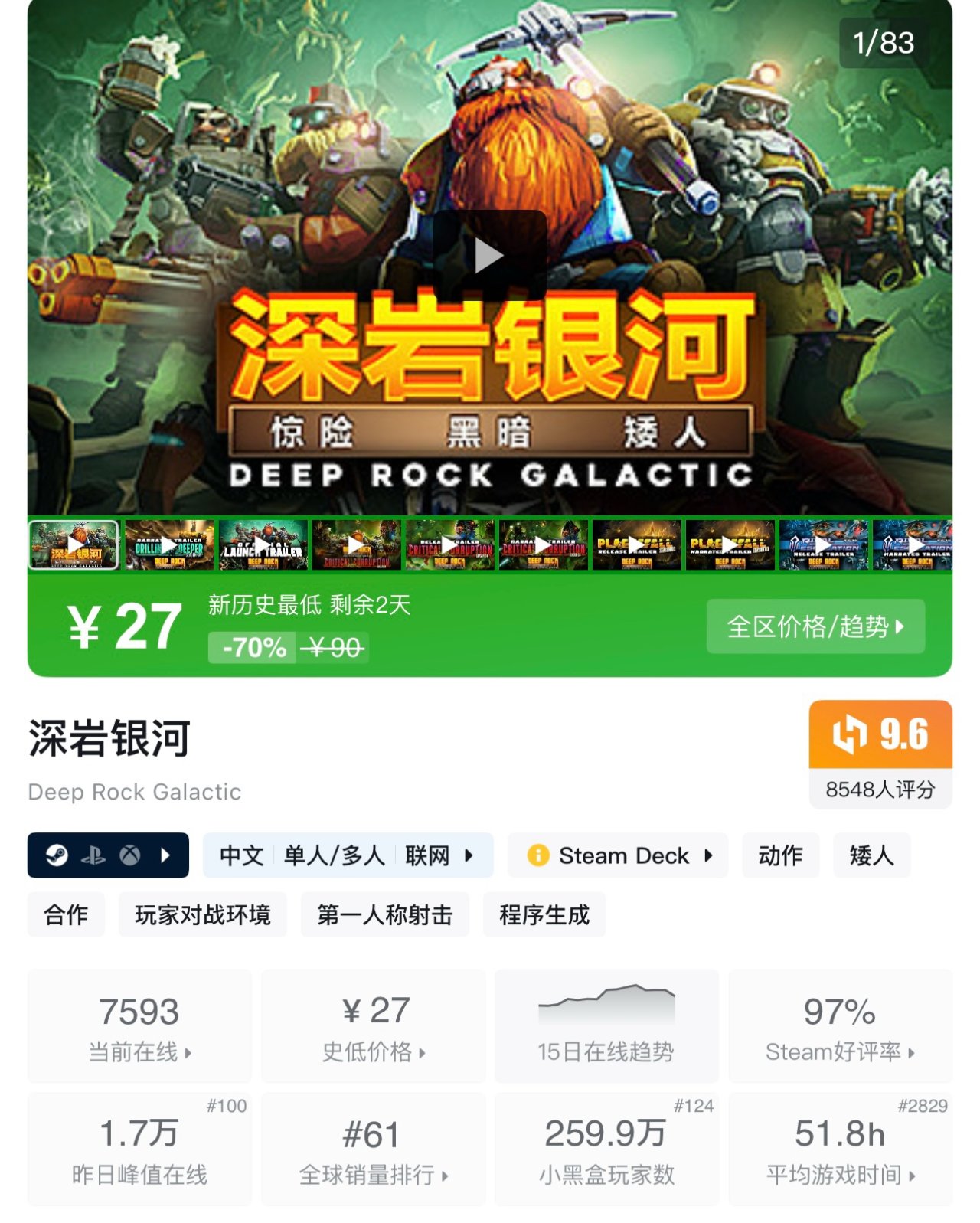 《深巖銀河》是一款多人合作的科幻題材第一人稱射擊遊戲,玩家將扮演太空矮人礦工,與隊友深入外星球可破壞的地下洞穴挖礦,同時抵禦大量外星蟲族的攻擊。