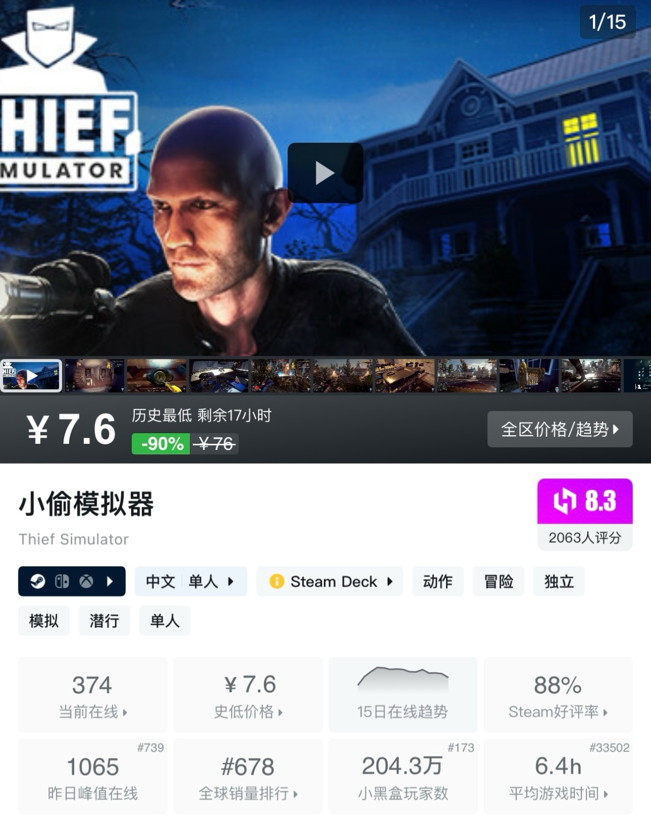 《小偷模擬器》是一款以“偷竊”爲主題的模擬潛行遊戲。玩家扮演職業小偷,通過觀察目標、策劃方案和運用工具來執行盜竊任務,在躲避安保力量的同時獲取財物並銷贓,還可體驗開放世界 sandbox 模式。