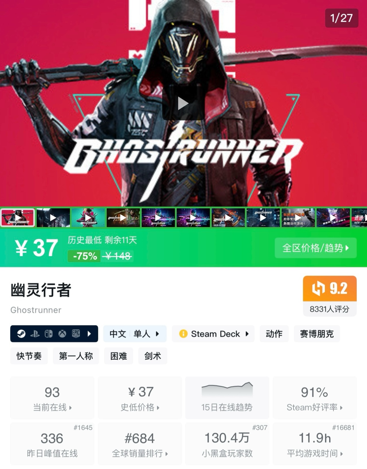 《幽靈行者》是一款賽博朋克風格的第一人稱動作遊戲,玩家將扮演失憶的幽靈行者,在末世避難所“達摩塔”中憑藉高速移動和凌厲斬殺,對抗暴君,探尋身世祕密並揭開背後真相。