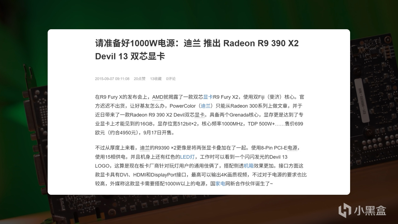 “战术核显卡”的梗,也是让人贻笑大方,300W的功耗表现,在AMD面前简直就是弟弟,AMD那边,可是曾搞过如390X2 这种功耗设定为500W级别的怪物。