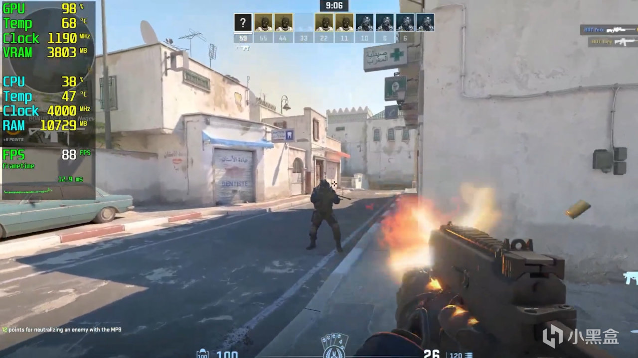 接着是CS2 1080P高画质下,帧数就有点难堪了,100帧都很难达到,基本上就是7~80帧的样子。