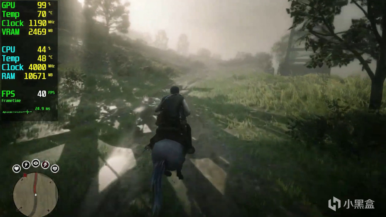 3A游戏大表哥2, 1080P低画质下,显卡压力还是比较大的,帧数也就只能勉强维持在40左右的帧数。
