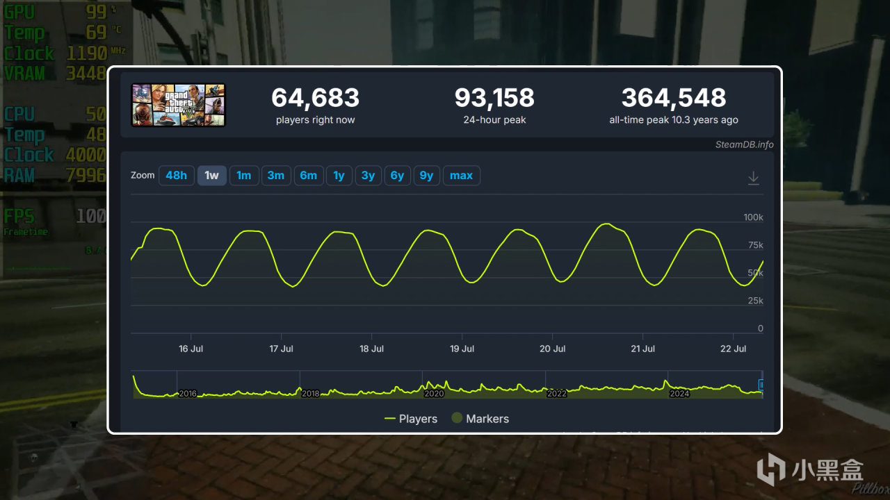 另一个R星的游戏,是这张显卡的下一年发布的,帧数表现还是非常不错的,在1080P高画质下还能做到100多帧的表现情况。