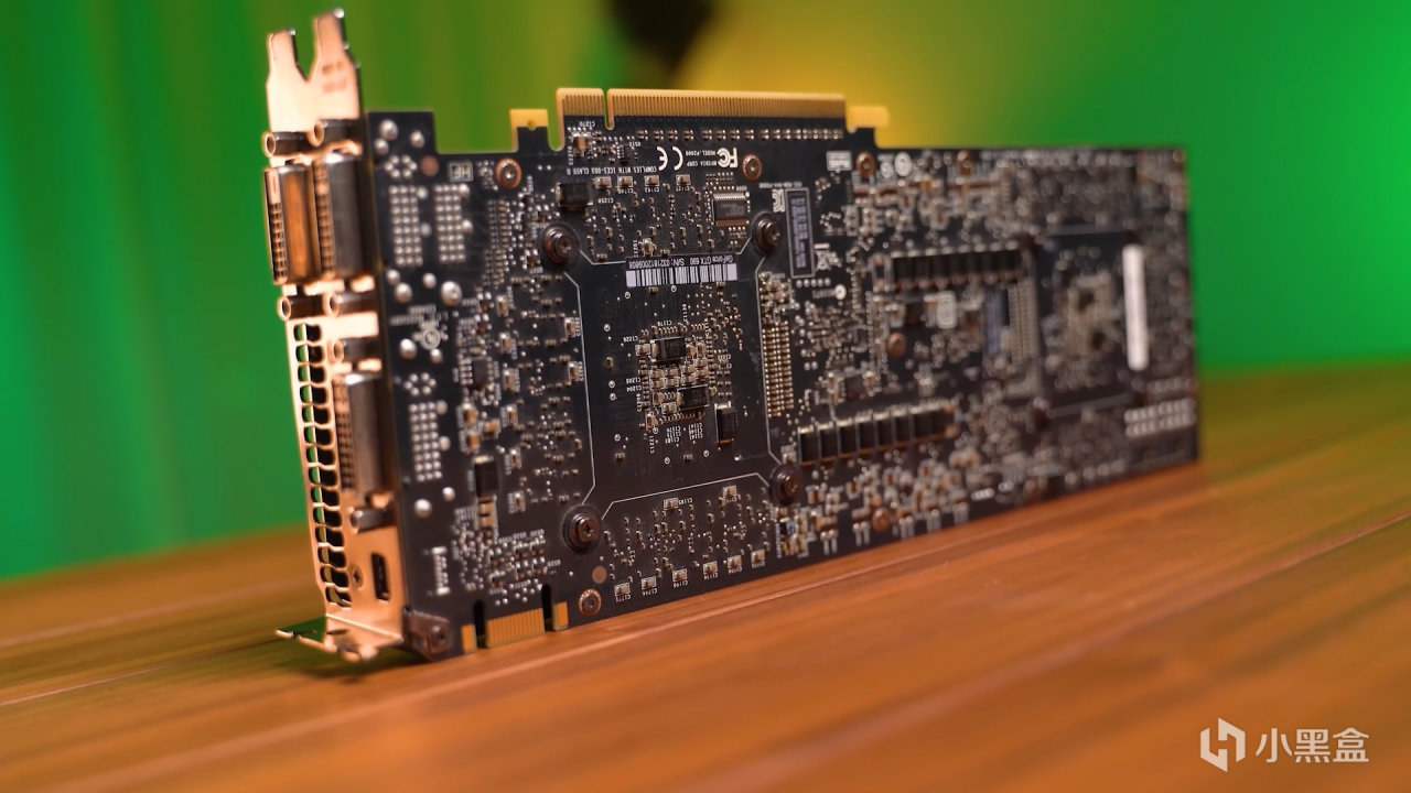 首先看看它的外观部分,作为一张消费级旗舰,老黄也是首次在公版设计上,采用了电镀处理的铝作为外部框架,均热板直接是开了两个小窗裸露在外面,中间为一个轴流式风扇,整体看上去,很难让人认为这是一张非公显卡的设计。