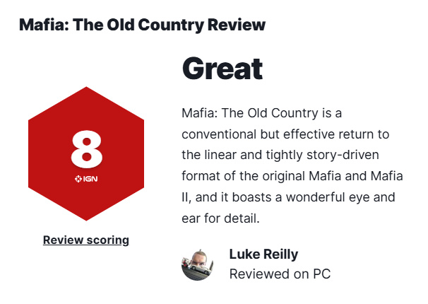 由Hangar 13开发、2K Games发行的开放世界动作冒险游戏《四海兄弟:故乡》全球媒体评分正式公布。根据Metacritic数据显示,本作PC版本目前获得76分平均分(基于51家媒体评测)