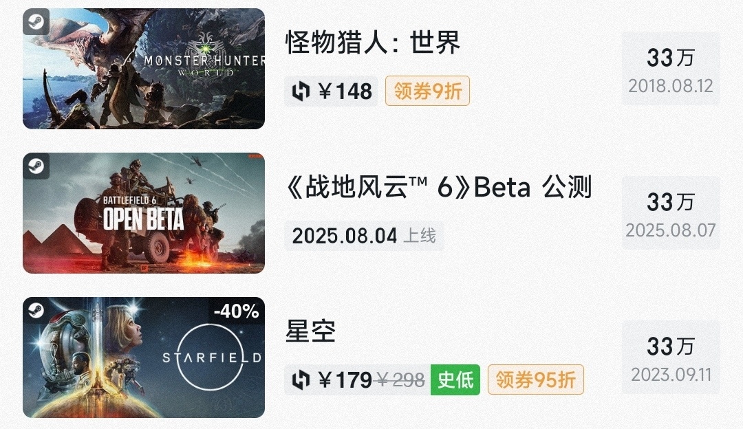 目前战地6最高峰值纪录是334549,被超越的《星空》峰值纪录为330723。距离超越《怪物猎人:世界》334684只有一步之遥。