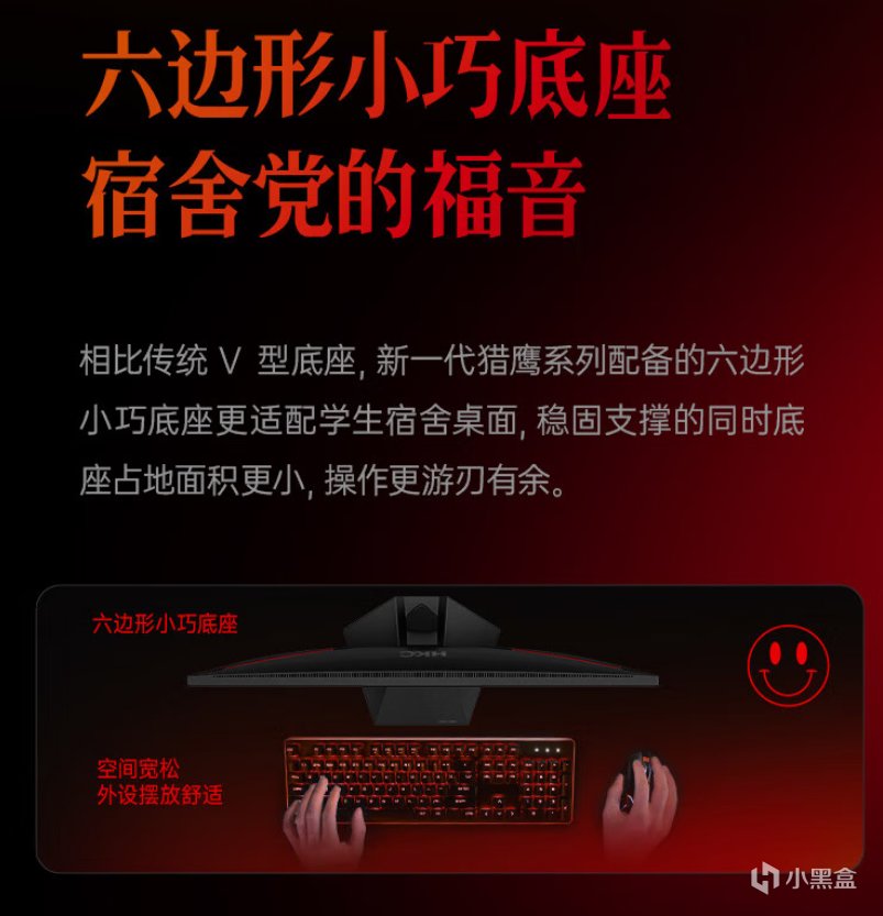 底座不同于部分显示器,这边采用六边形小巧底座,更省空间,对于学生用户来说是非常好的。