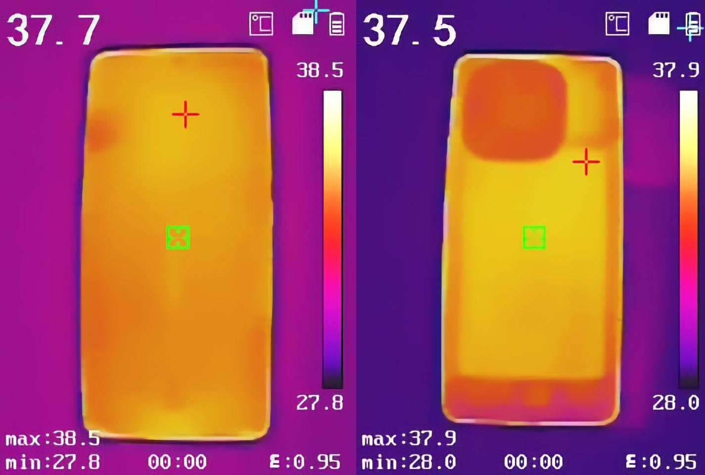 此时,机身正面最高温度38.5℃,背面最高温度37.9℃。