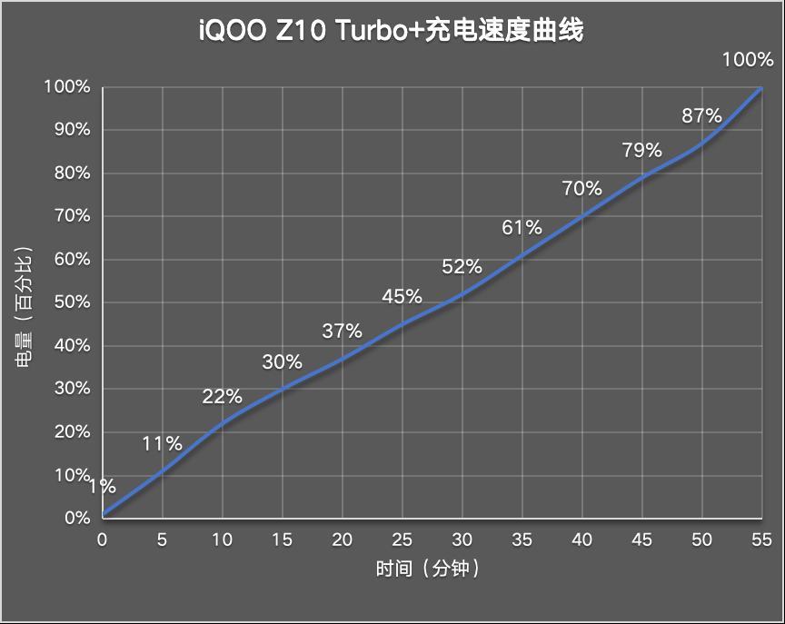 这个充电速度中规中矩,可惜不支持120W快充,要不然充电时间还可以压缩到45分钟以内。