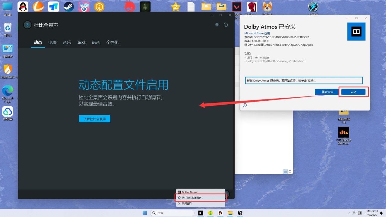 那我們回到杜比安裝器裏面重新安裝一下杜比軟件