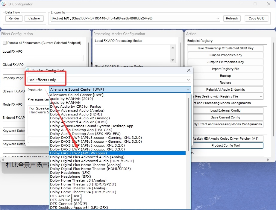 重新選擇Dolby DAX3 UWP APO Wrspper
