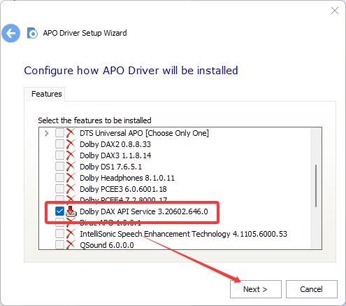 把Dolby DAX3 UWP APO Wrspper 這一步選錯了