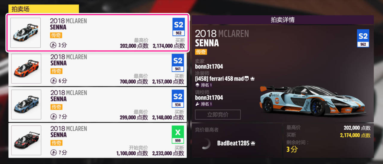 指定車輛爲:2018款邁凱倫 SENNA(車廠英文名:MCLAREN,車展,本週收藏品獎勵車)