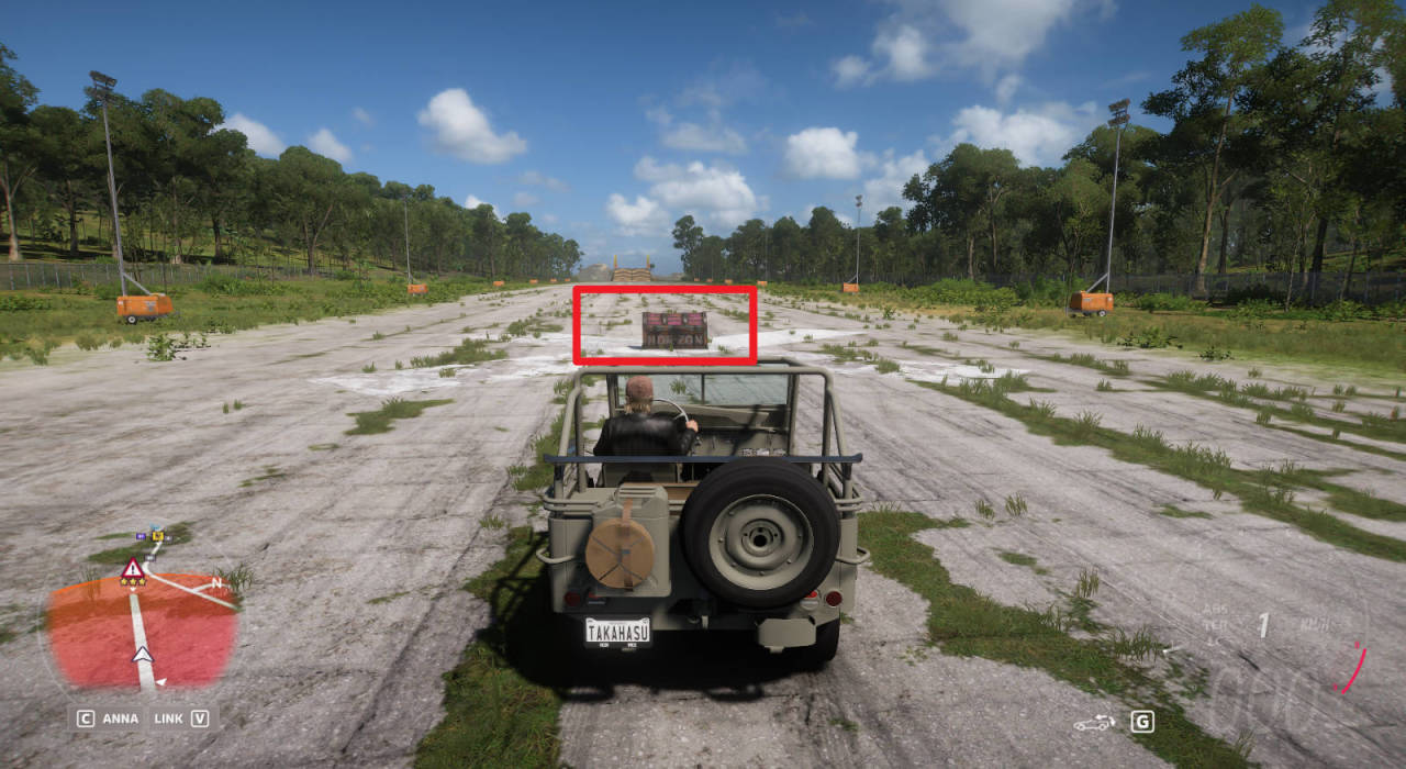 駕駛1945款WILLYS MB JEEP在機場測速區間獲得一星即可觸發寶箱大致範圍,具體位置如圖(需要的話可以改裝下車輛),完成獎勵爲300馬拉松點數