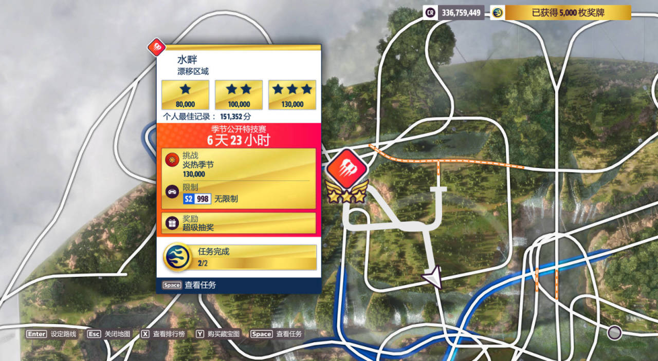 漂移區域:水庫,完成獎勵爲超級抽獎(限制S1(900)-TVR)