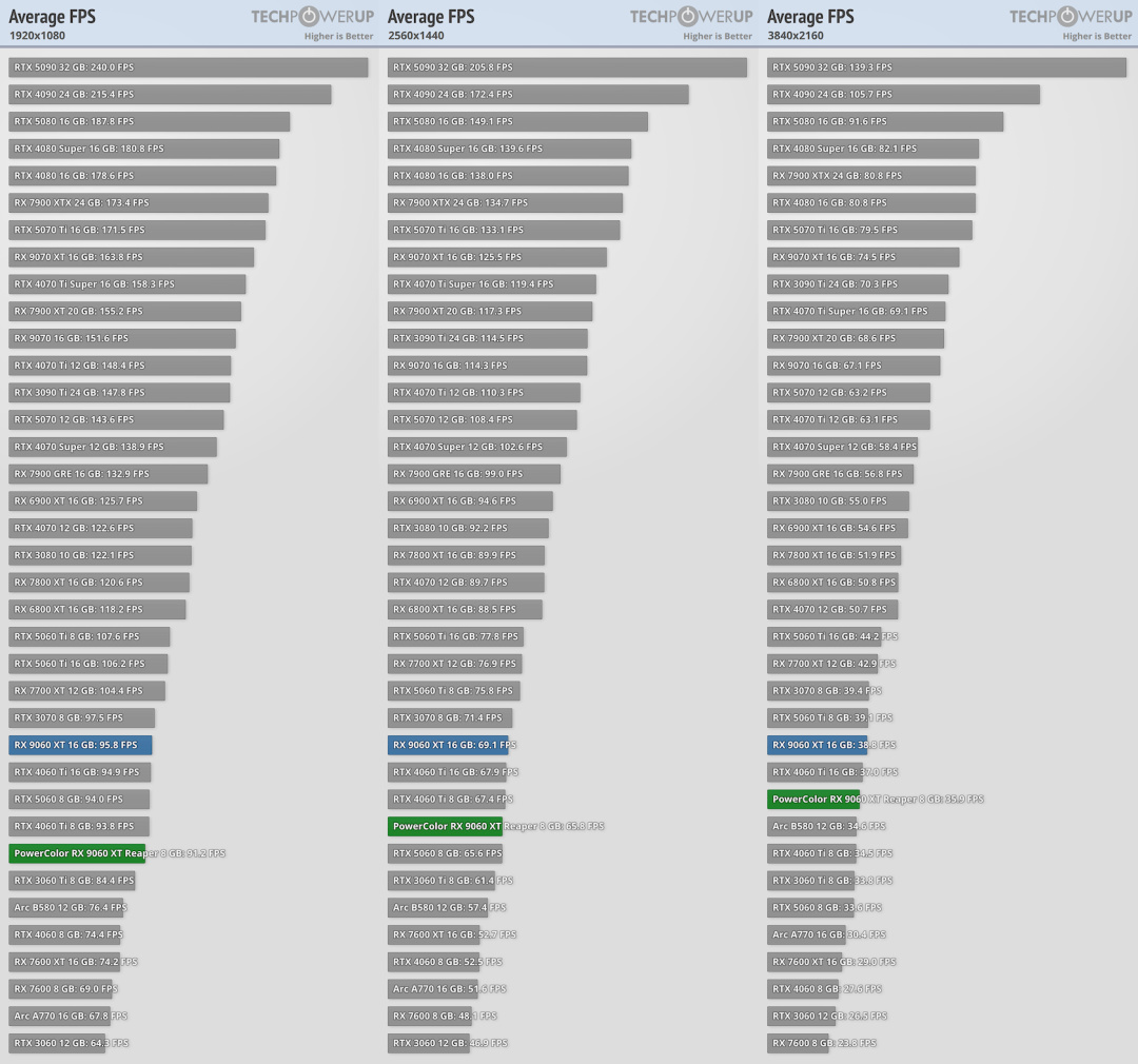 TechPowerUp 顯卡遊戲性能天梯圖彙總,基準:RX9060XT
